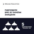 Ñüîãîäí³ âíî÷³ ï³ä ÷àñ ïîâ³òðÿíî¿ àòàêè ðîñ³éñüêèõ îêóïàíò³â ñèëàìè òà çàñîáàìè ³éñüêîâî-Ìîðñüêèõ Ñèë Çáðîéíèõ Ñèë Óêðà¿íè áóëî çáèòî 5 âîðîæèõ äðîí³â-êàì³êàäçå «SHAHED-136».
