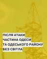 Вночі 11 жовтня Одещина зазнала чергової ворожої атаки, внаслідок якої залишилися без світла оселі 317 тис. родин. На ранок там, де це технічно можливо, фахівці перезаживили з резервних джерел обʼєкти критичної інфраструктури та 240 тис. клієнтів. Станом на 11:00 11 жовтня без світла залишається 77 тис. сімей.